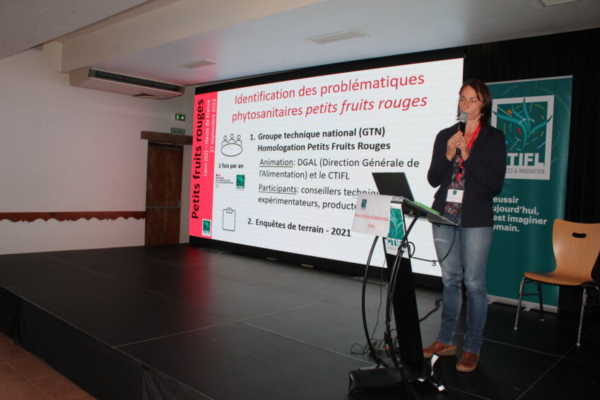 Les moyens de protections des cultures de petits fruits rouges ont notamment été évoqués. Anne Duval-Chaboussou du CTIFL a livré les résultats d'une enquête de terrain : « Les cultures de myrtilles et de framboises sont touchées par la drosophila suzukii, les rongeurs, les oiseaux et les pucerons », explique-t-elle. Les mûres, les cassis, les groseilles font aussi face aux pucerons et à diverses maladies.