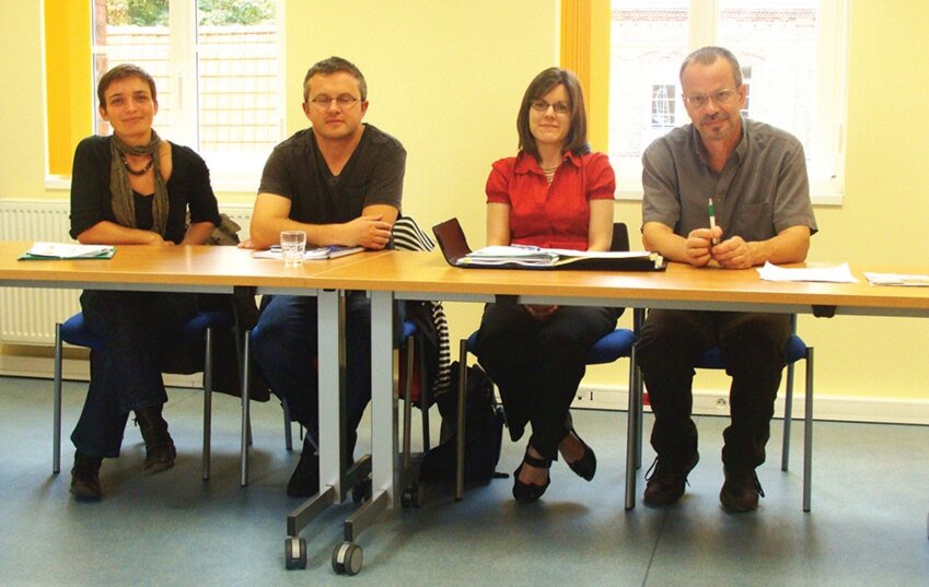 De g. à dr., Sarah Beuzelin ex-directrice d’Enerlya, Willy Flour, conseiller Espace infoénergie au PNR, Marie-Julie Seyller, chargée de mission plan climat territorial (Agence d’urbanisme et de développement), et Philippe Godeau, chargé de mission au PNR.
