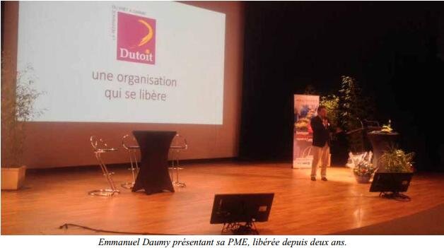 Emmanuel Daumy, a repris la biscuiterie Dutoit avec sa femme en 2006. Depuis deux ans, son entreprise est libérée. « Nous avions un management traditionnel. Nous avions recruté du personnel pour cela, mais après six mois, nous avons eu une perte du chiffre d’affaires et des performances catastrophiques. Le type de management était : exécution, contrôle et aucune discussion. Nous étions dans des stéréotypes. » Suite à cela, le directeur décide de trouver une solution et de changer de type managérial. « Nous avons instauré un “35 minutes” sur un atelier pour parler des choses qui allaient ou pas. Cela a donné des résultats étonnants, tout le monde a commencé à s’exprimer, avec une démarche commune de résolution des problèmes. C’est concret. »
