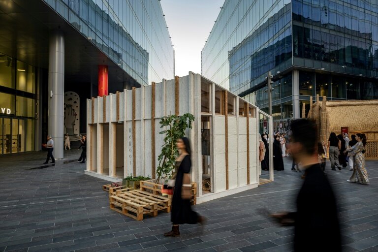 M. Almulla s'est associé à la start-up suisse Oxara, qui fabrique un substitut de ciment à faible teneur en carbone, pour créer des structures construites à partir de béton provenant de bâtiments démolis et de toitures en feuilles de palmier.