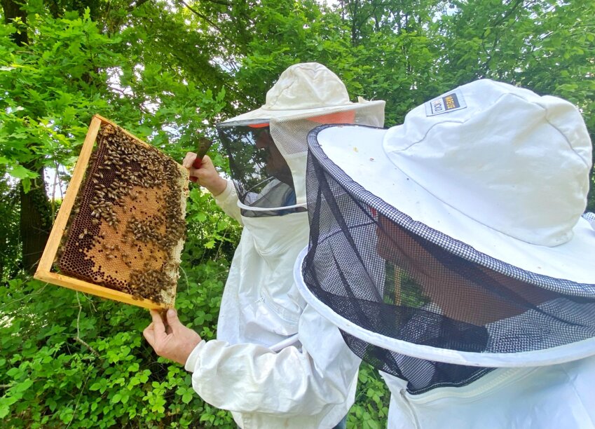 première production de miel, le deux apiculteurs sont aussi fiers de