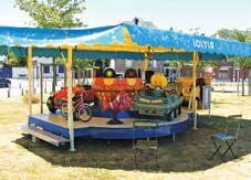 Les communes, désertées par les forains qui ne peuvent pas installer leurs manèges devenus trop grands pour les places de village, font appel à lui. Il se déplace aussi à l’occasion de mariages, d’anniversaires, de kermesses, fêtes d’hippodromes etc. Le tarif de location est de 600 euros à la journée, plus indemnité kilométrique, et de 300 euros la demi journée. Une simple rallonge Le manège de 7 mètres sur 5, et de dix-huit places dont sept sujets et une toupie au milieu, pour les bambins de 6 mois à 10 ans, peut être monté en une heure. Une seule rallonge branchée sur une simple prise suffit pour le faire tourner