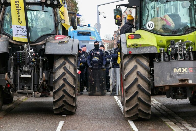 A Strasbourg, une cinquantaine de tracteurs d'agriculteurs de la Coordination rurale (CR, 2e syndicat agricole) ont ainsi été bloqués par les forces de l'ordre à environ un kilomètre du Parlement européen, où ils souhaitaient dire leur opposition à l'accord.