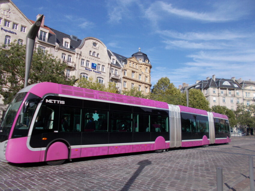 Il y a d’abord une nécessité. Les plus anciens véhicules du parc du réseau Le Met’ datent de 2003 et seront réformés en 2021. Dans le renouvellement d’une partie des véhicules, nécessaires en termes écologiques et de confort pour les usagers, Metz Métropole a investi 6,26 millions d’euros. Répartis de la sorte : 3,3 millions d’euros pour l’achat de 3 nouveaux Mettis, 1,83 millions d’euros pour 5 bus articulés de 18 mètres et 1,13 millions d’euros pour 4 bus standards de 12 mètres. En 2020, le parc métropolitain comptait 190 véhicules et un âge moyen de près de 9 ans. Les 3 nouveaux Mettis apparus cette année dans le paysage messin des transports urbains dessinent les véhicules dernière génération. Ils portent la dénomination Citaro hydrides. Sans entrer dans les détails abscons d’une explication technique, il faut retenir qu’ici le moteur électrique s’intègre entre le moteur thermique et la boîte de vitesses. Il permet la récupération d’énergie quand le bus ralentit et convertit l’énergie propulsive en courant pendant le freinage et la décélération.