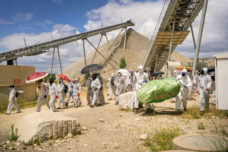 A l'appel de l'organisation Extinction rébellion et de collectifs locaux, l'action s'est déroulée dans l'après-midi sur la commune du Vernet, non loin de Foix, en Ariège.