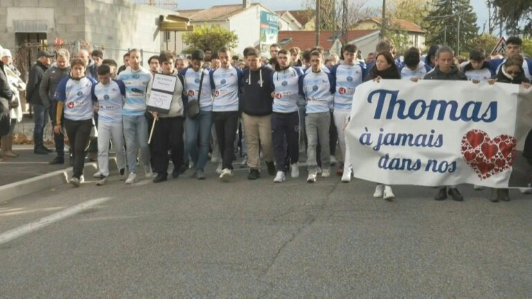 "Votre présence en nombre témoigne de l'attachement extraordinaire que procurait Thomas quand on croisait son chemin", a salué un des organisateurs de la marche, avant un lâcher de ballons accompagné par une minute d'applaudissements puis par un temps de recueillement dans le stade.
