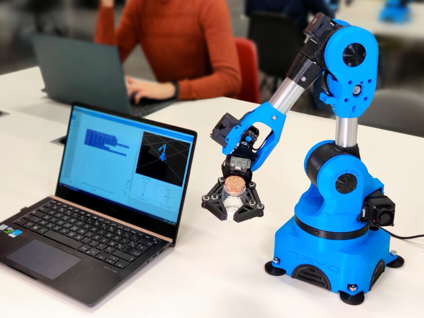 Démocratiser la robotique. Voilà l’objectif de Niryo, start-up créée en 2017 par Edouard Renard et Marc-Henri Frouin. La problématique était simple à l’époque : comment rendre accessible la robotique aux universitaires pour appréhender le plus facilement possible les différentes facettes de ce milieu. C’est de là qu’est né Niryo One, petit bras robotique de six axes en open source. «L’idée originelle est venue d’un constat : dans mon cursus universitaire, je n’avais accès à aucune solution de bras robotisé industriel, comme on pourrait retrouver sur les lignes de productions. On parle de robots qui coûtent extrêmement chers, qui sont volumineux et dangereux. Nous en avons déduit qu’il y avait un grand marché à développer» explique Marc-Henri Frouin, PDG de Niryo.