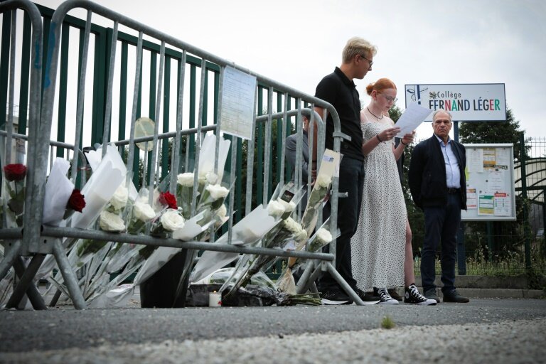 Les participants ont déposé des bougies et des fleurs devant le collège Fernand Léger avant de respecter une minute de silence à sa mémoire.