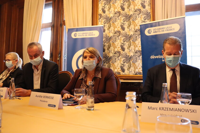 Depuis le 22 novembre dernier, la chambre de commerce et d'industrie Grand Lille dispose de son nouveau bureau. Pour ce nouveau mandat 2021-2026, les sept membres du bureau sont des chefs d’entreprise. La présidente, Aurélie Vermesse, est à la tête de l’hôtel cinq étoiles le Clarance, à Lille. Lors d’une réunion deux jours après l’élection consulaire, elle évoquait les priorités de la CCI Grand Lille pour les cinq années à venir avec quelques-uns de ses élus : Francis Grenier, André-Paul Leclercq, Marc Krzemianowski (vice-président), Emmanuel Thebaux (trésorier), et Murielle Lapage (présidente de la CCI de Douai).