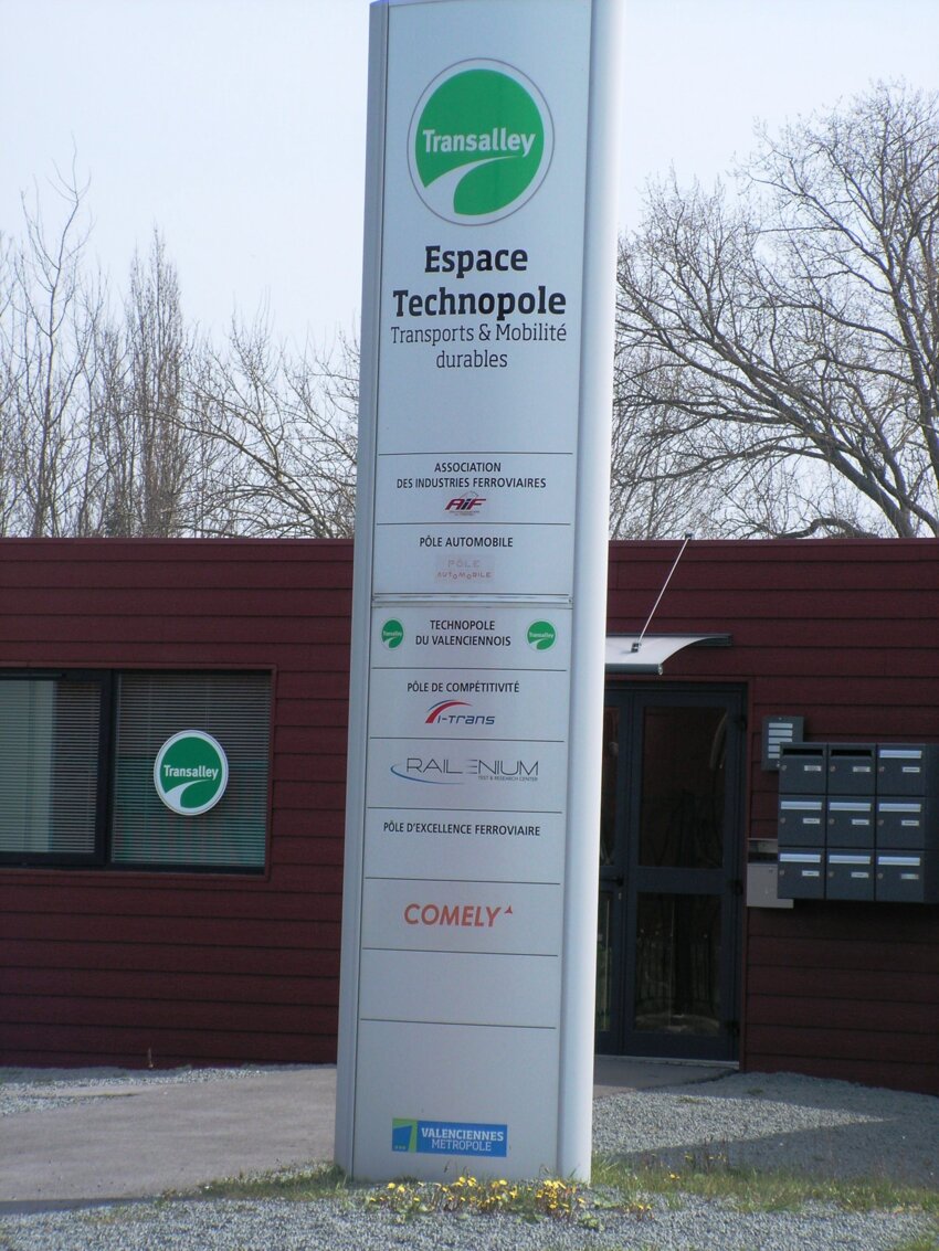 Ce qui a été appelé «l’espace technopole Transalley» est pour l’instant hébergé dans des locaux provisoires et modulaires à Famars, à une extrémité du domaine universitaire du Mont-Houy, au sud de Valenciennes. Le ferroviaire y est bien représenté.