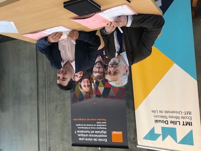 Olivier Mast, directeur Orange Grand Nord-Est, et Alain Schmitt, directeur d’IMT Lille Douai, ont signé une convention de partenariat en faveur de la formation et de l’insertion des étudiants dans le monde professionnel. Il s’agit notamment de faire participer les salariés d’Orange aux activités de l’école (cours, conférences, journées de recrutement) ainsi que dans ses instances de gouvernance. À proximité du futur siège régional d’Orange, à Villeneuve-d’Ascq, l’école d’ingénieurs pourra ainsi envoyer ses étudiants dans «l’incubateur de changement», cet espace intégré avec lequel ils pourront travailler avec des start-up, des salariés d’Orange ou d’autres porteurs de projet. Chaque année, Orange accueille d’ores et déjà une cinquantaine d’étudiants d’IMT Lille Douai.