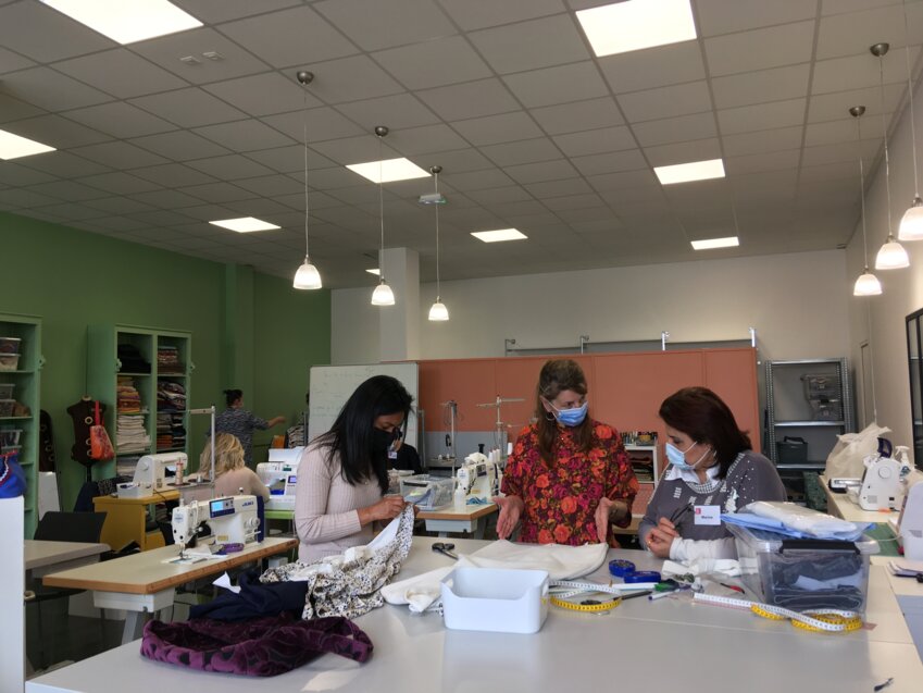 « Certaines des volontaires se sont découvert une passion pour la couture, d’autres étaient déjà des professionnelles aguerries dans leur pays », détaille Brigit Morien. Avec l’aide de Corinne Lebas, toutes ont appris à maîtriser machine à coudre, surjeteuse, brodeuse… « L’idée est qu’elles puissent répondre à des processus de production sans pour autant s’y enfermer. Professionnellement c’est intéressant puisqu’après des années compliquées, le textile redevient un secteur porteur avec de vrais débouchés », note celle qui dispense des cours de couture depuis 2016.