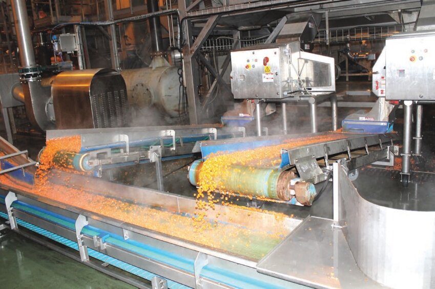 En s’équipant d’un tunnel de surgélation doté de la technologie IQF qui permet de surgeler rapidement et individuellement chaque légume jusqu’à ce que son cœur atteigne une température de -18° C, Pinguin Comines augmente sa capacité de production à 45 000 t contre 30 000 t en 2013 avec trois tunnels et 35 000 en 2014, sur quatre principaux légumes (épinards, petits pois, haricots verts et carottes) transformés par cadencement saisonnier. La production se fait sur cinq jours et ce, 24 heures sur 24. L’approvisionnement du site en matières premières est régional auprès de 220 producteurs regroupés au sein de l’OPVL (Organisation de producteurs de la vallée de la Lys), qui rayonne sur quatre bassins (Picardie, Douai-Arras, Comines et Aire-sur-la-Lys) pour une superficie de 2 800 ha, hors les carottes achetées par ailleurs. Ratio logique dans le monde du surgelé, 70% de la production vont aux marques distributeurs, les 30% restants allant à la marque D’Aucy qui appartenait à l’ancien propriétaire du site.