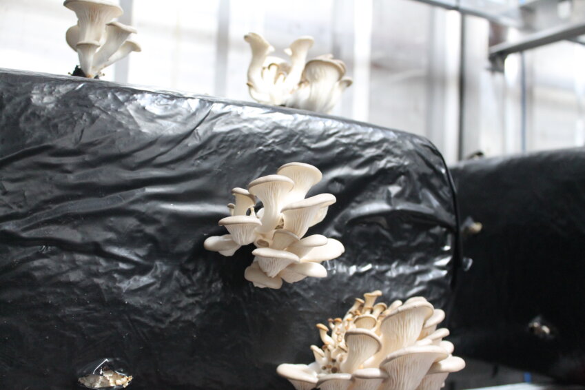 La philosophie de Pleurette s’articule autour de trois termes : recycler, réutiliser et valoriser. «Nous recyclons les matières, réutilisons les lieux et valorisons les personnes», explique l’entrepreneur. Son objectif est de pouvoir créer une «boucle parfaite» entre les champignons sortants et le substrat entrant, fourni par les maraîchers. La production est 100% locale, les étiquettes viennent de Lille, les caisses de livraison en bois sont réutilisées et le marc de café servant de substrat aux kits vient du grossiste Leclaire. «Je veux changer les modes de production», lance Jürgen Engerisser. Il souhaite par ailleurs être capable de fabriquer son propre substrat à partir de résidus urbains et de drêches brassicoles. Avec une double visée : «s’en servir pour les champignons et valoriser pour les sols». Ainsi, en approvisionnant localement les maraîchers, il espère réinjecter de l’activité dans l’économie locale. Théo, stagiaire, étudiant en licence chimie parcours QEPI (qualité, environnement, production industrielle), travaille à faire pousser des champignons sur des drêches de brasserie (issues d’un partenariat avec Les 3 Brasseurs). «La contrainte est de ne pas utiliser la thermie qui s’applique normalement pour éviter la contamination du substrat», explique-t-il. Le projet est pour l’instant encore en phase de test, le substrat de marc de café faisant office de témoin.