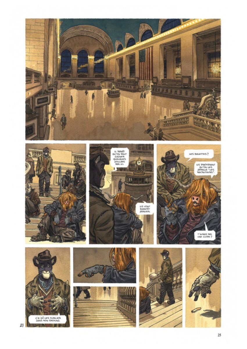 Huit ans après le dernier volet dédié au célèbre chat détective privé John Blacksad, Juan Díaz Canales (scénario) et Juanjo Guarnido (dessins) proposent un diptyque – intitulé Alors, tout tombe – pour cette nouvelle enquête. Laquelle s'ouvre avec un certain Kenneth Clarke, président du syndicat des travailleurs du métro, qui fait appel aux services de John Blacksad. La mafia a mandaté un tueur à gages pour le liquider, et il souhaite vivement que Blacksad intervienne avant qu’il ne soit trop tard. Clarke est devenu gênant pour Solomon, le maître bâtisseur de l’aménagement de New York, qui rêve de démanteler le réseau de transports en commun de la ville pour faire la place à des autoroutes urbaines... Une BD de très belle facture où New York, carrefour de tous les fantasmes et abjections, s'affirme comme un personnage à part entière. Du cadre enchanteur de Central Park aux souterrains du métro, d’un diner sorti d’un tableau d’Edward Hopper aux chantiers de construction, les auteurs conjuguent une plongée palpitante au cœur de Big Apple avec une passionnante enquête policière et une critique sociale acerbe. Le tout nappé d’humour et peuplé de personnages zoomorphes pittoresques dont l'incontournable Weekly, une fouine journaliste spécialisée dans le sensationnel.