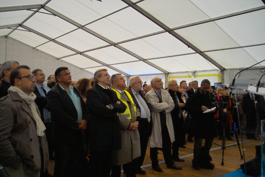 La cérémonie a démarré avec la visite du chantier qui fut l’occasion de constater que les fondations étaient terminées et que les travaux amorçaient la conception du premier étage des cuves. Avec ses trois cuves de stockage de gaz naturel liquéfié, le terminal fournira une plus grande flexibilité au réseau.