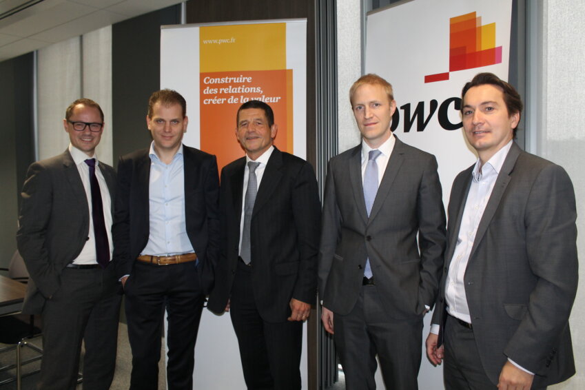 De gauche à droite, Renaud Vanelle, directeur fondé de pouvoirs, PwC Services aux entrepreneurs, Alexandre Decrand, associé, PwC Audit, Philippe Aerts, associé, PwC Audit, responsable de la Région Hauts-de-France, Etienne Durieux, avocat, PwC Société d'avocats, et Guillaume Molmy, associé, PwC Consulting.