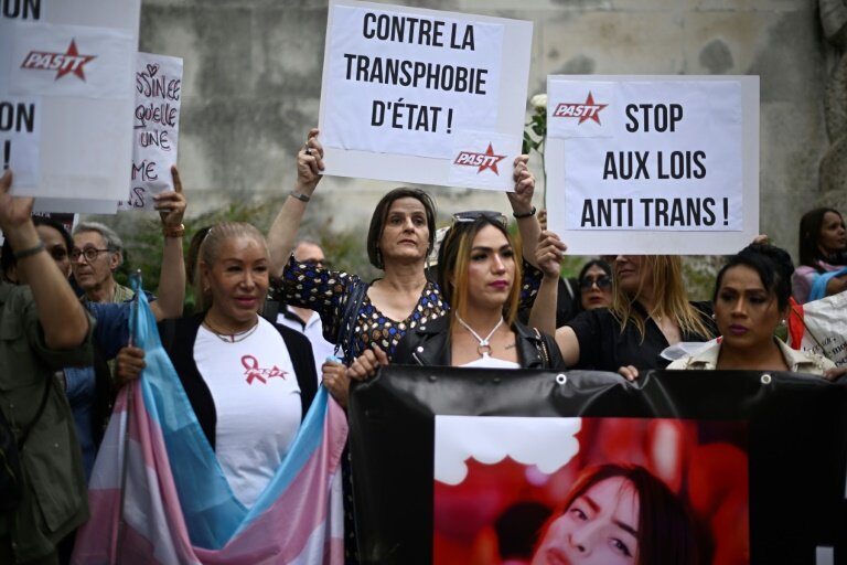 "Géraldine s’est assumée en tant que femme dès dix ans. Je l’ai soutenue face à son père qui l’a exclue du domicile familial (...) Géraldine, tu pars de ce monde comme une martyr de la cause trans", a déclaré devant les manifestants la mère de la victime, venue du Pérou.
