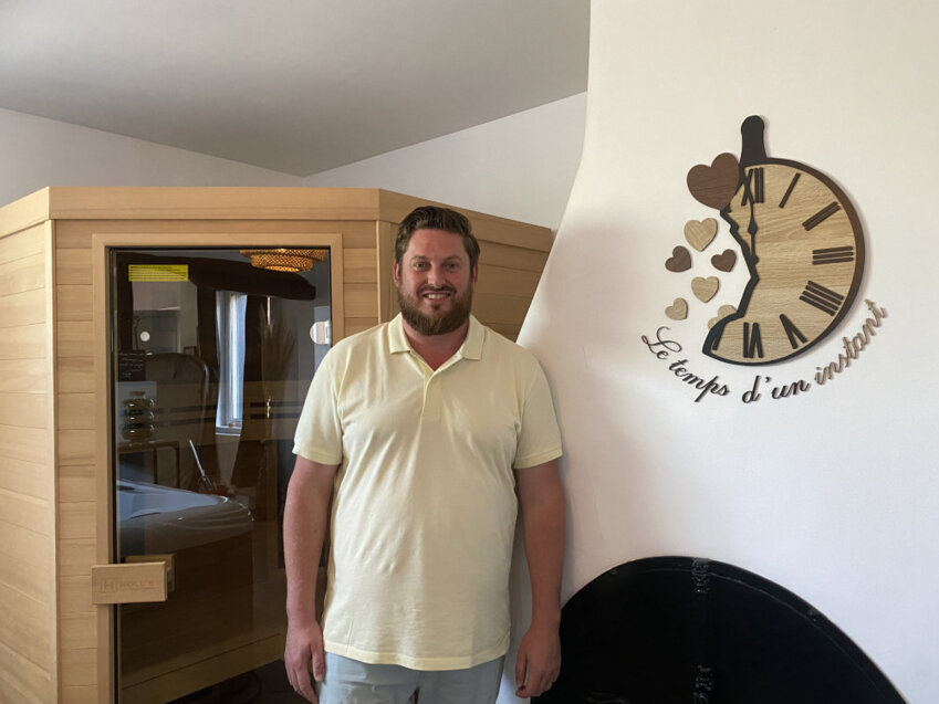 Avec sa belle façade en brique, le Temps d’un instant séduit au premier regard. Le charme se poursuit à l’intérieur du gîte aménagé pour deux personnes et décoré dans des tons clairs et avec du mobilier en majorité en matières naturelles chiné et parfois relooké maison. La surprise est totale dans le salon où trônent un sauna et un jacuzzi pour trois personnes devant une télévision grand format : «Le côté bien-être est très recherché par nos clients, explique Emilien Desbiendras. Ils peuvent s’y détendre si la météo est mauvaise en journée. Le soir, rien de tel pour décompresser. C’étaient des prestations que nous recherchions quand nous partions à deux. Maintenant, c’est devenu un critère essentiel pour 80% de nos clients. Je viens m’occuper de l’entretien du jacuzzi tous les jours».