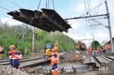 Du 19 avril au 11 mai, en raison de travaux, la circulation des trains a été totalement interrompue sur plusieurs axes de l’étoile d’Amiens. L’objectif de ces chantiers est de garantir la sécurité et le confort des circulations ferroviaires ainsi que le niveau de performance et de service de l’infrastructure. Parmi les travaux concernés, le remplacement des tabliers du pont rail de la rue René et Marcelle Sobo à Amiens. Construit dans les années 30, il supporte actuellement quatre voies principales électrifiées permettant le passage des trains Amiens–Paris, Amiens–Lille, Amiens– Laon et Amiens–St Quentin. « Les tabliers actuels, partie du pont supportant les voies ferrées au-dessus de la rue, doivent être remplacés comptetenu des sollicitations journalières auxquelles ils sont soumis, plus de deux cents trains par jour », rappelle Jean- Yves Dareaud, responsable communication de Réseau Ferré de France Nord- Pas-de-Calais Picardie. La visite de chantier, ouverte à la presse, a permis de voir de plus près les opérations de dépose des tabliers actuels. Cette opération, réalisée en milieu urbain dense, nécessite l’utilisation de moyens techniques particuliers, dont une grue routière d’une puissance d’une centaine de tonnes. Outre l’ouvrage de la rue René et Marcelle Sobo, un autre ouvrage sur Longueau, secteur de la Canardière, est également concerné. Pour ces travaux, Réseau ferré de France investit 5,2 millions d’euros sur fonds propres.