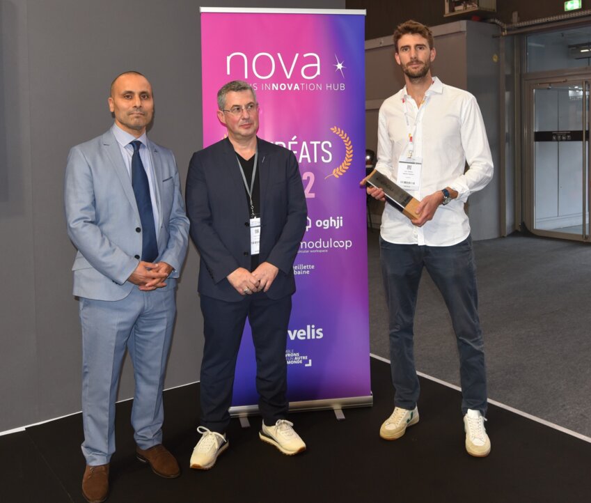 Le 3 octobre dernier, sur le salon Batimat à Paris, Karl Terral (à gauche sur la photo), CTO de Swoop Energy s'est vu remettre le prix de la catégorie «Idées» du concours Nova qui récompense les solutions innovantes pour mieux construire, mieux vivre et mieux travailler. Depuis Roubaix, Swoop Energy développe des solutions énergétiques durables sur la base de batteries de véhicules de seconde vie. Un principe qui permet de remplacer les groupes électrogènes traditionnels par des générateurs zéro émission.