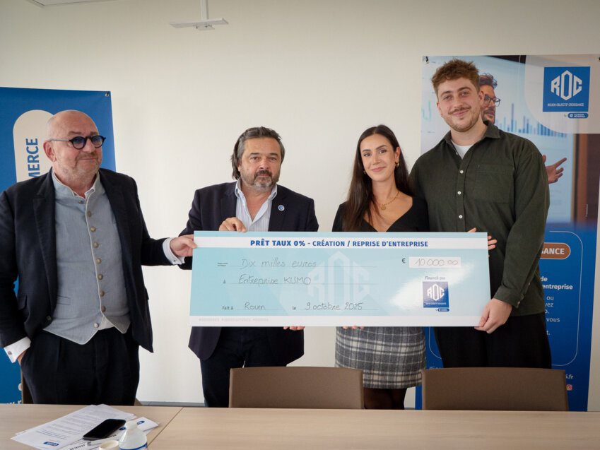 À l'occasion du lancement de ce nouveau dispositif, le président de l’association Rouen Objectif Croissance Frederick Hubin et le président de la CCI Rouen Métropole Olivier Rousseille ont officialisé le tout premier prêt de Rouen Objectif Croissance. Il a été accordé à Nathan Martin et Camille Petracco, deux jeunes entrepreneurs à l’origine de “Kumo Coffee”, un coffee shop d'inspiration asiatique qui ouvrira prochainement à Rouen.