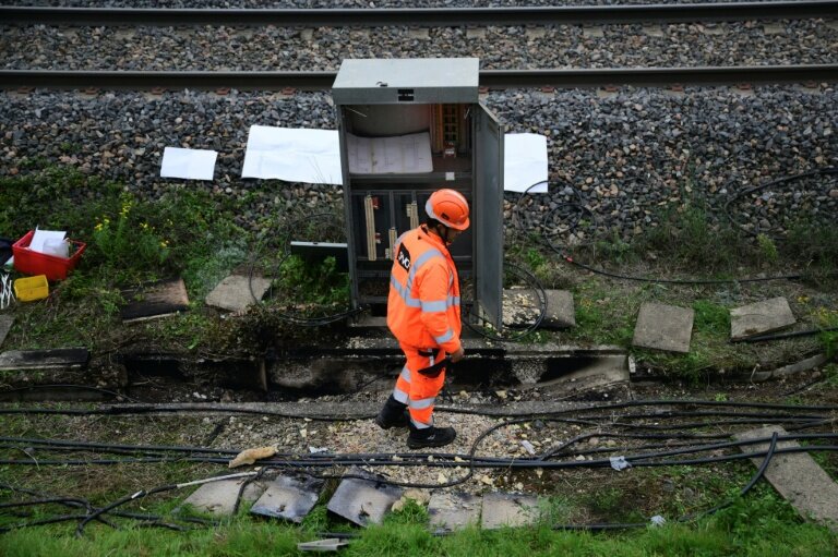 Dans la nuit de dimanche à lundi, des câbles de fibre optique connectés au réseau ferroviaire ont été incendiés par un ou des inconnus provoquant des annulations ou des perturbations pour une centaine de TGV en cette période de vacances.