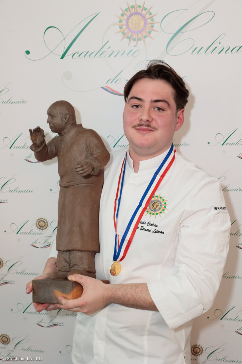 Ce concours est porté par l’Académie Culinaire de France en collaboration avec le groupe Bernard Loiseau, la Cité Internationale de la Gastronomie et du Vin et la ville de Dijon. Les épreuves de cette compétition ont été organisées à nouveau dans les locaux de l’école Ferrandi Dijon. Pour cette édition, 6 candidats, issus des prestigieuses brigades étoilées, ont été en lice dont Sacha Croteau, du restaurant Epicure, Le Bristol à Paris. À l’occasion des 50 ans de l’arrivée de Bernard Loiseau à Saulieu, les participants avaient pour mission de préparer, en plus d’un dessert, deux plats iconiques : Les jambonnettes de grenouilles à la purée d’ail et jus de persil et le filet et le ris de veau français dorés, accompagnés du riz Camarguais à la truffe. Les plats préparés ont été évalués par un jury présidé par Patrick Bertron, Ambassadeur du groupe Bernard Loiseau, Fabrice Prochasson, Président de l’Académie Culinaire de France et le chef Japonais Hiroshi Yamaguchi. « Chaque édition du Trophée Bernard Loiseau à la Cité de la Gastronomie résonne avec notre histoire. La première édition marquait les 20 ans de la disparition de papa, et celle-ci coïncide avec les 50 ans de notre groupe, donc c’est à chaque fois beaucoup d’émotion. Aujourd’hui ce fut une très belle édition, avec un niveau qui est monté en complexité, notamment avec l’épreuve des ris de veau, mais fidèle à son ambition initiale de transmission. » souligne Bérangère Loiseau, Présidente du Groupe Bernard Loiseau