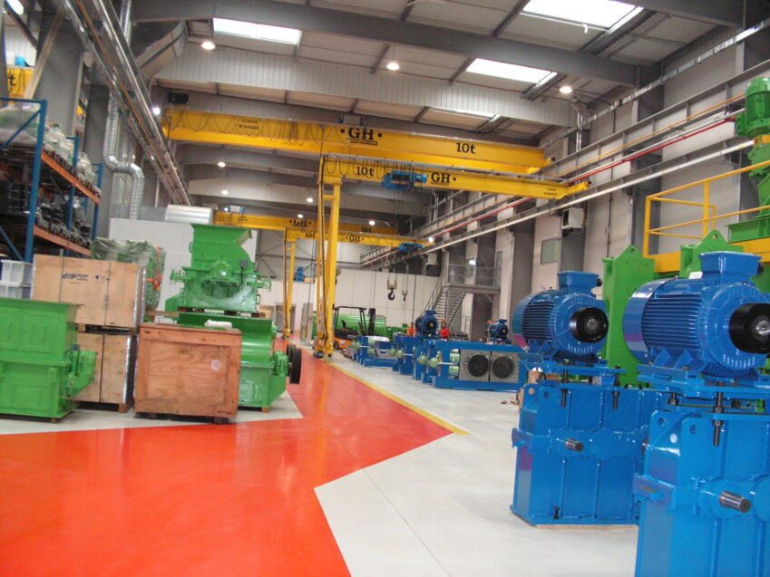 Ces machines-outils servent par exemple à fabriquer des berlingots ou pastilles de sel pour les adoucisseurs, des galets de produits surgelés, des granulés d’engrais… Frédéric Dehont explique que l’activité consiste à broyer, compacter, presser, briqueter, agglomérer des produits à base de poudre. Exemple de procédé mis en œuvre : la presse à roues tangentes. Dans les ateliers, on découvre différentes machines équipées de dispositifs métalliques alvéolés à double rouleau permettant de donner les formes voulues. «Notre station d’essais nous permet de vérifier que la machine est bien adaptée à la demande et de proposer des démonstrations.»
