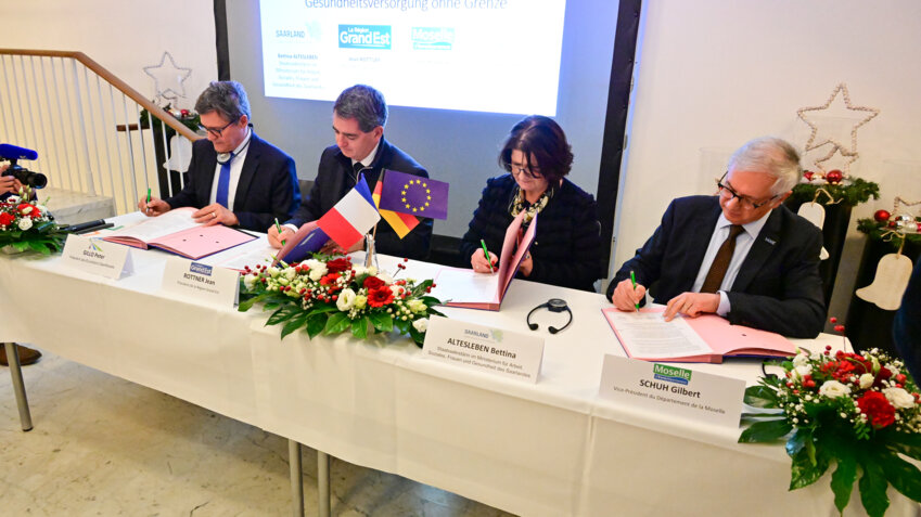 L’objectif étant de joindre leurs forces afin de faciliter l’accès aux soins dans les régions transfrontalières. Depuis plusieurs années, l’Eurodistrict est mobilisé pour faire évoluer la coopération transfrontalière sanitaire entre la Moselle et la Sarre. C’est dans le cadre de son projet «GeKo SaarMoselle» qu’a été initiée cette alliance. «Je suis fier de signer l’alliance pour la santé transfrontalière qui atteste de la volonté de nos territoires d’avancer toujours plus vite et mieux en faveur de la prise en charge, de l’accès aux soins et du remboursement des frais de santé de nos concitoyens», souligne Jean Rottner, président de la Région Grand Est. Gilbert Schuh, vice-président du département de la Moselle, a également exprimé sa satisfaction quant à la bonne coopération des acteurs locaux. «La santé est désormais un thème majeur pour les citoyens sarrois et mosellans de notre bassin de vie et je suis heureux de l’unité des élus locaux autour de la santé transfrontalière et de son développement», déclare Gilbert Schuh, vice-président du département. En ce qui concerne les prochaines étapes du projet, la priorité de l'Eurodistrict est de poursuivre les actions engagées dans le cadre du projet GeKo, qui s'achèvera à la fin de cette année. «Il est maintenant extrêmement important de maintenir la dynamique créée autour de cette thématique. Car pour notre région frontalière, le bénéfice est double : tout d'abord, les sites hospitaliers seront renforcés de part et d'autre de la frontière, mais surtout, les patients en seront les premiers bénéficiaires», conclut Peter Gillo, président de l'Eurodistrict.