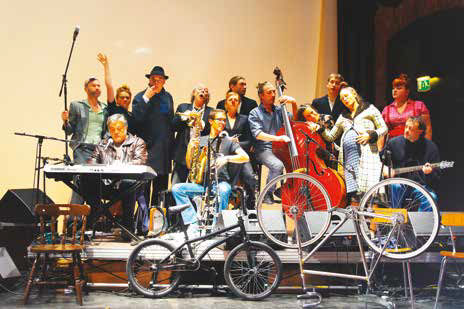 Un cabaret d’aujourd’hui «Pour Mignon Palace, j’ai pu travailler avec une équipe formidable et on a eu l’envie commune de poursuivre ce voyage surréaliste au pays de l’enfance. Ce sont de jeunes artistes, venus parfois de loin, et j’aime cette idée de transmission. Ils sont venus écouter le vieux clown parler de ses souvenirs du cabaret de ses parents à Friville-Escarbotin, dans la baie de Somme, et de cette culture populaire dont je suis un héritier, mais moins avec un regard nostalgique que dans le désir de construire un cabaret d’aujourd’hui. J’aime montrer le côté nomade des artistes de cirque, une troupe de saltimbanques où l’on perçoit entre eux beaucoup d’humanité que l’on partage naturellement avec le public. Dans ce spectacle où les femmes mènent la barque – en particulier Stéphanie Petit, notre nouvelle Yolande Moreau, et Tiphaine Raffier notre madame Loyal – les personnages sont des «encombrants», des petites gens à qui je rends hommage. Ce sont aussi des revenants qui viennent de loin mais nous parlent de notre monde et font écho à la crise d’aujourd’hui. J’aime conjuguer rigueur et folie dans mes spectacles, même s’il faut être très précis avec les numéros d’acrobaties ou d’équilibre. Cependant, je préfère donner l’illusion que c’est improvisé alors qu’en fait tout est réglé au cordeau. Seule la musique de Nono (Arnaud Van Lancker et son orchestre du Tire Laine, NDLR) crée une énergie différente à chaque représentation et imprime le tempo à l’équipe. Pour ce spectacle, j’ai imaginé que l’on fabriquait un film muet lors de la représentation et, évidemment, les influences cinématographiques sont nombreuses. Je leur ai montré Les Vacances de Monsieur Hulot de Jacques Tati ou L’Ange bleu de Josef von Sternberg où le vieux professeur tombé amoureux fou de Marlène Dietrich devient clown pour la suivre. J’ai beaucoup regardé les grands comiques burlesques comme les Marx Brothers ou Buster Keaton mais aussi des films muets plus méconnus comme A travers l’orage de David Wark Griffith avec Lillian Gish ou les premiers Max Linder».