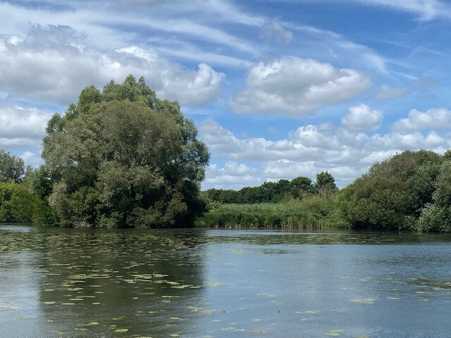 En ce début juillet et d’après-midi, des pêcheurs sont installés tranquillement au bord du fleuve. Du côté gauche, des marais et étangs privés, alimentés par la vieille Somme commencent à apparaitre. Des huttes de chasse trônent. À droite du fleuve, s'étendent les marais de Bourdon. L’insolite clocher de l’église de la commune, coiffé d’une flèche de style gothique ornée de crochets sur les arêtes, se distingue entre les arbres.