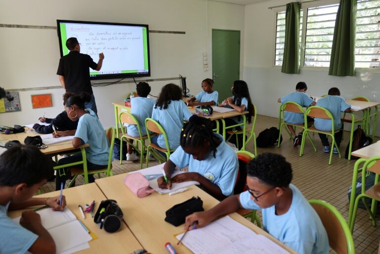 A l'entrée d'un collège de la ville de Saint-Benoît, à La Réunion, beaucoup de bleu: depuis lundi, ses 480 élèves ont l'obligation de porter une tenue unique, une première pour un établissement public dans l'île, dans la lignée des annonces du gouvernement.