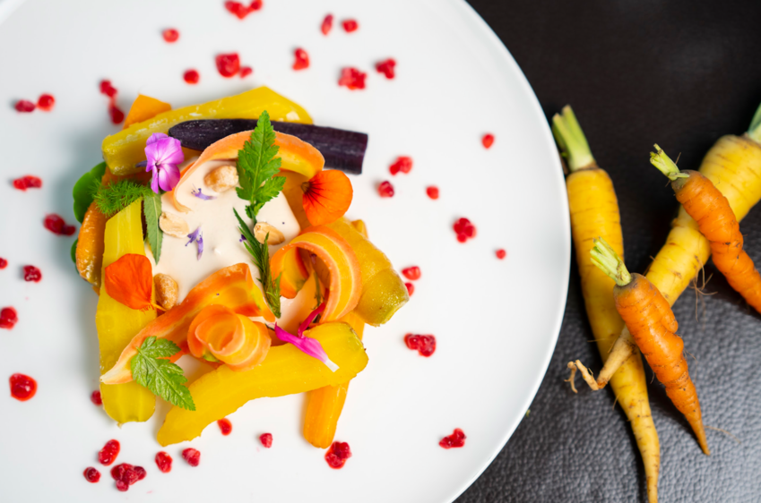 Installé avec son épouse, Laura, à la Douze à Delme, Thomas François célèbre les plats français en sublimant le végétal avec des légumes et des herbes aromatiques qu’il cultive avec amour à proximité de son établissement.