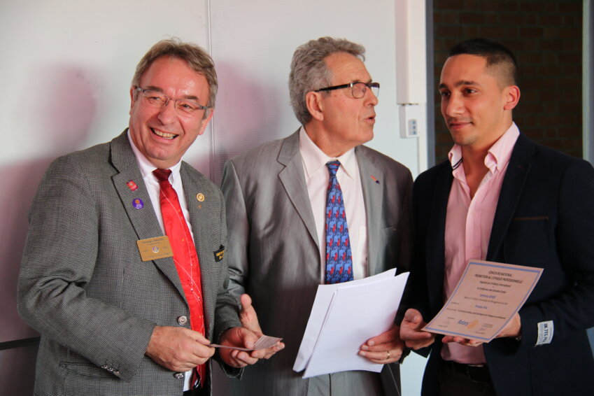 De gauche à droite, Georges Bacot, gouverneur du District 1520, Georges Crapet, animateur du concours prix éthique, et Anthony Sensé, étudiant à l'Ecole universitaire de management de Lille, qui a reçu le 1er prix pour son essai "La fonction achats, point de départ de l'éthique en entreprise".