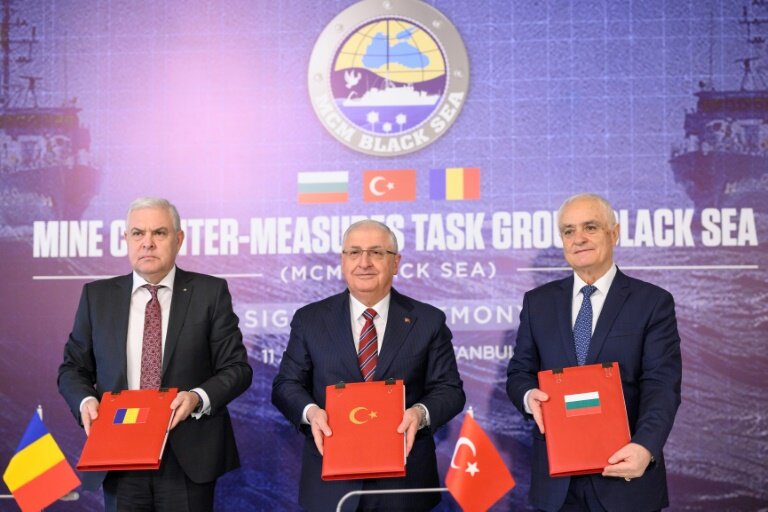 "Nous avons décidé conjointement de signer un protocole entre nos trois pays afin de lutter plus efficacement contre le danger des mines en mer Noire en renforçant notre coopération et notre coordination existantes", a déclaré M. Güler lors de la signature, précisant que les négociations avaient commencé "en septembre".