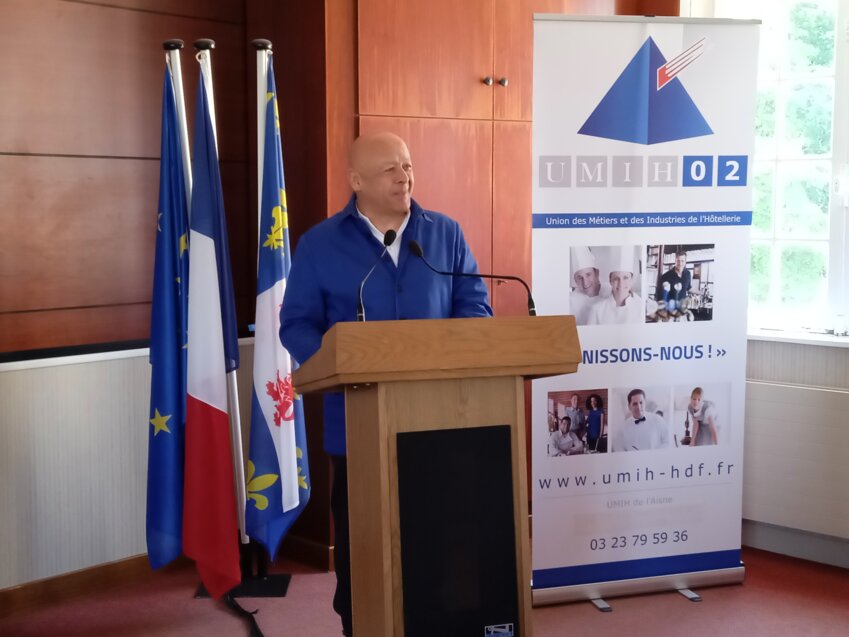 Le président de l’UMIH Aisne, Jean-Marie Serre, a accueilli avec fierté à Urcel, le président confédéral, Thierry Marx, le 5 juin dernier, dans les locaux de la Chambre de métiers de l’artisanat à l’occasion de l’Assemblée générale. « C’est une première pour moi d’accueillir le président confédéral, jusqu’ici nous avions reçu des présidents de branche », confie le représentant des restaurateurs, hôteliers, traiteurs et des représentants du monde de la nuit adhérents pour le département rural de l’Aisne. Et de ruralité il en fut question dans les propos du président confédéral : « L’UMIH est très attachée à la ruralité, défendre la ruralité est un de nos chantiers, les touristes ont découvert d’autres espaces que les zones capitale ou littorale. Nous devons les accueillir dans les meilleures conditions. »