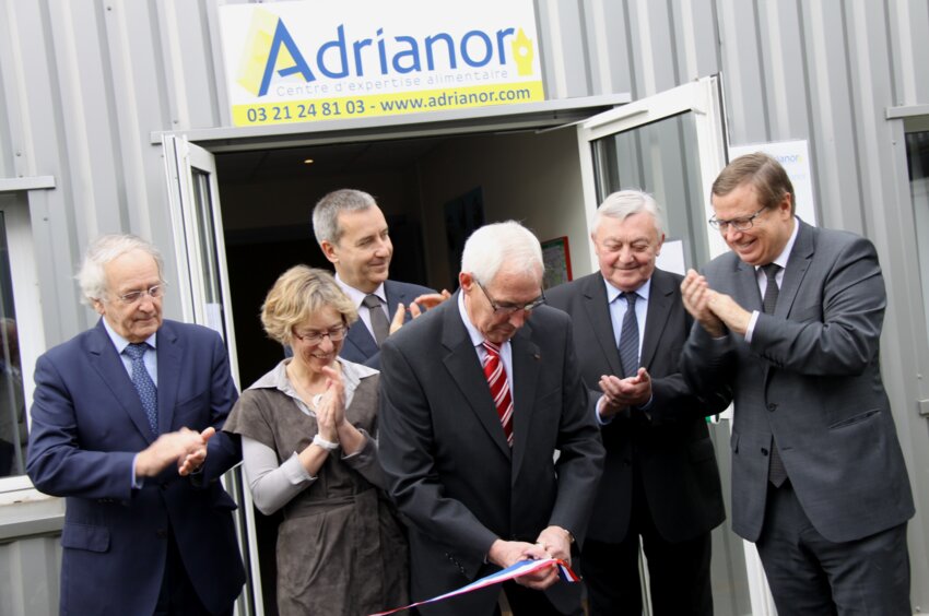 De gauche à droite lors de l’inauguration : Daniel Percheron, président du Conseil régional, Christine Chénè, directrice d’Adrianor, Denis Robin, préfet du Pas-de-Calais, Jean-Marie Raoult, président d’Adrianor, Daniel Maciejasz, vice-président du conseil général du Pas-de-Calais, et Philippe Rapeneau, président de la communauté urbaine d’Arras.