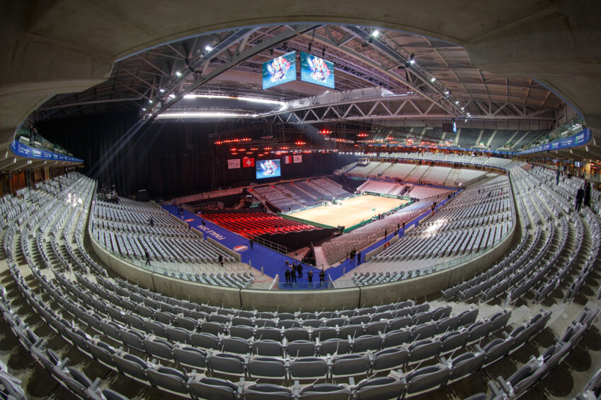 Le stade Pierre-Mauroy lors de la Coupe Davis de tennis. Pour le mondial de handball, le stade offrira une capacité de 25 000 places.