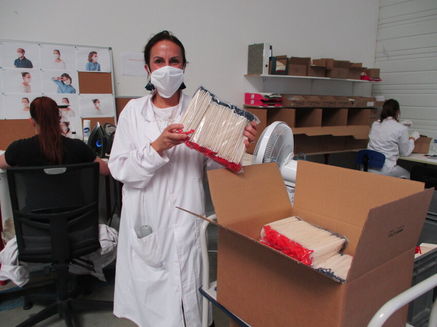 « Nous avons recruté 17 personnes par téléphone ou visioconférence, 60% sont des couturières de métier, elles avaient envie de faire quelque chose d’utile, c’était très touchant. Nous avons offert 2 000 masques gracieusement à des personnes qui ont travaillé durant le confinement : les caissières, les employés des pompes funèbres, le personnel des Ehpad, des entreprises de nettoyage… Le 15 avril, j’ai décidé de monter une société avec l’appui de mon fils, adossé à l’entreprise existante. En pleine période de confinement alors que les sociétés ne réglaient plus leur loyer, il a fallu se mettre en recherche d’un local, recruter, acheter des machines textiles… heureusement toutes les planètes étaient alignées », se remémore la fondatrice des Ateliers français de la sellerie. Nous avons démarré l’activité le 4 mai et honoré 100% des commandes émanant des collectivités dans les temps. En deux mois, nous avons fourni 20 0000 masques à 80 communes. Les maires venaient récupérer eux-mêmes les masques à l’entrée du centre de formation. Ils nous disaient merci. On les sentait soulagés. »