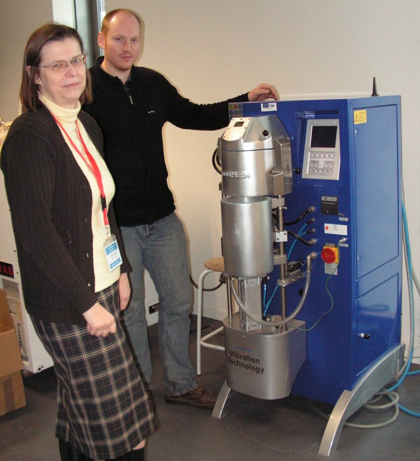 Anne Leriche, la directrice du Laboratoire des matériaux céramiques et procédés associés, en compagnie de Yannick Lorgouilloux, enseignant chercheur. La machine permet de couler du métal dans la céramique.
