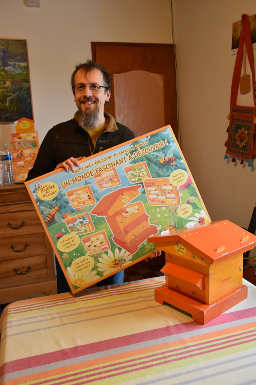 L’illustrateur Frédéric Verheu a initié son projet La Ruche Des Abeilles il y a un an, dans sa commune de La Comté. Très sensible à la cause environnementale, Frédéric Verheu a développé, avec sa ruche, un projet ludo-éducatif qui tourne autour des abeilles. «Elles sont un symbole fort de la protection de notre planète. Les abeilles représentent des sentinelles de la nature qui sont en danger. J’ai choisi cet insecte car il s’agit d’un vecteur de choix pour véhiculer des messages sur la biodiversité et sensibiliser le public, notamment les enfants, sur les problématiques environnementales», explique Frédéric Verheu. Après de nombreuses années passées chez des géants de l’édition comme Atlas, De Agostini, l’homme possède une forte expérience dans ce domaine et il a créé un outil pédagogique sous forme de kit ludique. «Le produit est conçu en carton. Il faut assembler la ruche. Support complet, le concept allie activité annuelle, jeu et éducation. Ma ruche aborde de multiples aspects, comme le rôle des abeilles dans la nature, le miel, la pollinisation… Il existe aussi une version dans un format plus petit», précise Frédéric Verheu.