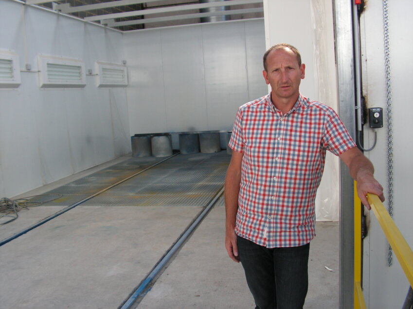 Franck Douillez, le gérant. Derrière lui, la nouvelle cabine de peinture.