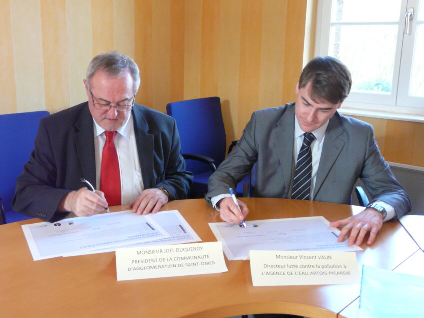 Joël Duquenoy, président de la Caso, et Vincent Valin, directeur de la lutte contre la pollution à l’Agence de l’eau Artois-Picardie.
