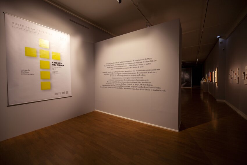 Elle présente quatorze œuvres, commandées auprès d’autant d’artistes contemporains par le collectionneur et amateur d’art Claus Zöllner. L’exposition offre également l’occasion de découvrir ou redécouvrir des artistes aussi divers et reconnus que Françoise Abraham, Léopold M. Baijot, Michèle Battut, Alain Bonnefoit, Liliane Caumont, Élisabeth Cibot, Jacques Coquillay, Jean-Pierre Gendis, Gérard Le Gentil, Hervé Loilier, Dieter Müller, Bernardino Toppi, Jean-Marie Zacchi et Jan Zoritchak, chaque artiste ayant conçu et réalisé une œuvre formant une station du chemin de croix. La présentation de cet ensemble au sein du musée de La Cour d’Or prolonge la politique d’ouverture à l’art contemporain. Elle s’inscrit également dans la lignée de plusieurs expositions récentes telles que Visages d’Alain Brizzi.