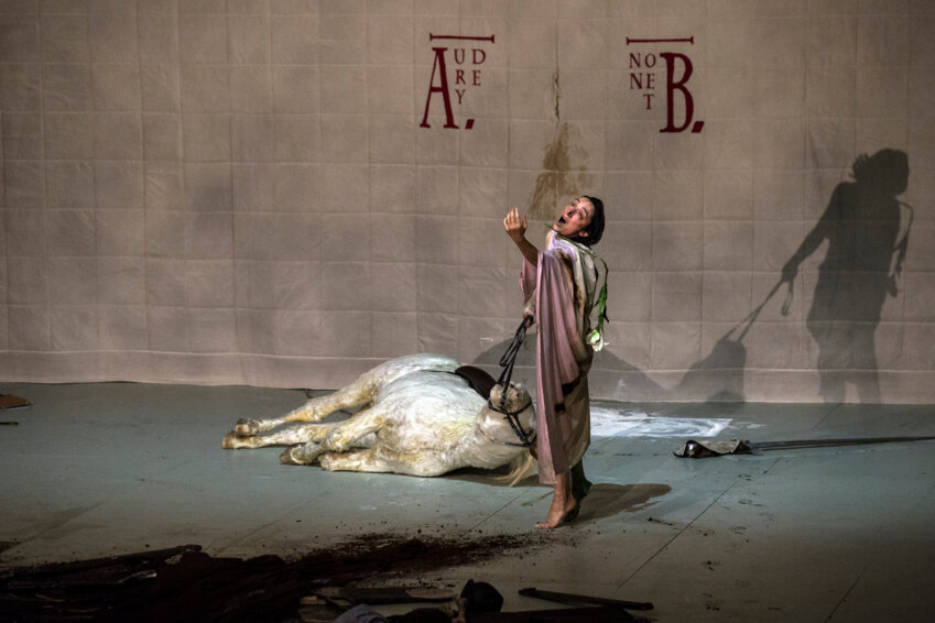 Dans un rêve fébrile de chants, de textes dits et de musique, cette œuvre épouse quelques passages-clés de la vie de Jeanne d’Arc au moment où, seule à l’approche de la mort, il lui faut faire face à elle-même et à sa France. Visionnaire, prégnant, ambigu : le mystère lyrique d’Honegger requiert un metteur en scène comme Romeo Castellucci qui sait comment pénétrer au cœur des mythes fondateurs occidentaux et en distiller du théâtre novateur et sans compromis. Il en va de même pour le personnage de Jeanne d’Arc – interprétée ici par l’extraordinaire Audrey Bonnet – Romeo Castellucci la regarde droit dans les yeux et sans parti pris. Pour délester Jeanne de toute charge historique, l’artiste italien la situe dans un contexte résolument différent : le décor réaliste et profane d’une salle de classe. Tout commence par la fin d’une journée de cours ordinaire. La sonnerie retentit, les élèves quittent la classe, un concierge entre dans le local. Il est venu pour ranger, mais cela lui prendra longtemps…