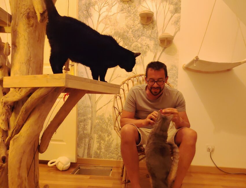 À 48 ans, Christophe Flamant, professeur d'anglais à Roye a décidé de créer sa petite entreprise liée à sa passion pour les chats. Ouverte en février 2025, L'échatppée belle aux Charmilles remporte un vif succès et notamment l'été, la haute saison pour accueillir les félins venus de toute la région et même au-delà. «Je souhaitais faire de cette pension la solution idéale quand les maîtres partent en vacances. Les chats partent en vacances eux aussi. S'ils ne peuvent pas partir avec les maîtres, ils viennent en vacances ici. Je voulais vraiment créer une pension qui soit 4 étoiles pour les chats, où ils ont leur espace à eux dans la maison, où on vient pour les chouchouter, on vient jouer avec eux, on s'occupe d'eux et qu'ils aient du plaisir à être ici», assure Christophe Flamant qui à l'intérieur propose deux belles pièces sur deux étages qui communiquent entre elle.
