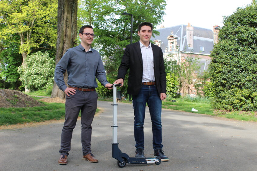 Depuis plusieurs années, les adultes se réapproprient la trottinette pour leurs trajets en ville. Celle du futur s’appelle Simone, et elle est valenciennoise. Une fois pliée, cette nouvelle trottinette est aussi épaisse qu’une ramette de papier. «Comme le parapluie rétractable que tout le monde laisse dans son sac quand il fait beau, nous voulons que Simone soit transportable partout», expliquent Steven Pingon et Rémy Montagne, les fondateurs de la start-up éponyme. Ces deux ingénieurs de l’automobile se sont rencontrés il y a cinq ans à l’usine Renault de Douai. Tous deux partageaient alors la même problématique du dernier kilomètre à parcourir rapidement entre l’arrêt de transport en commun et le lieu de travail. «Le vélo était trop lourd et encombrant dans le bus ou dans le tram. Le skateboard, c’était très peu pour moi, et la trottinette, ça prenait toujours trop de place», se souvient Steven Pingon.
