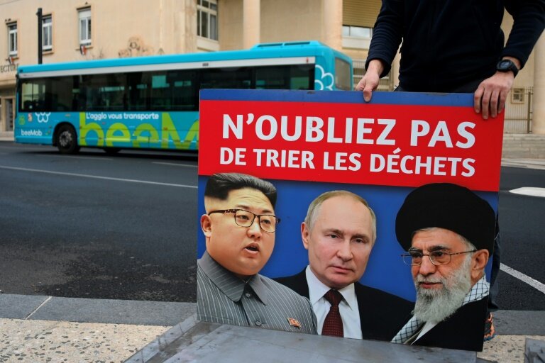 La mairie de Béziers avait décidé d'illustrer sa campagne de sensibilisation au tri sélectif des déchets avec une affiche réunissant les photos de l'ayatollah Khamenei, du président russe Vladimir Poutine et du dirigeant nord-coréen Kim Jong Un.