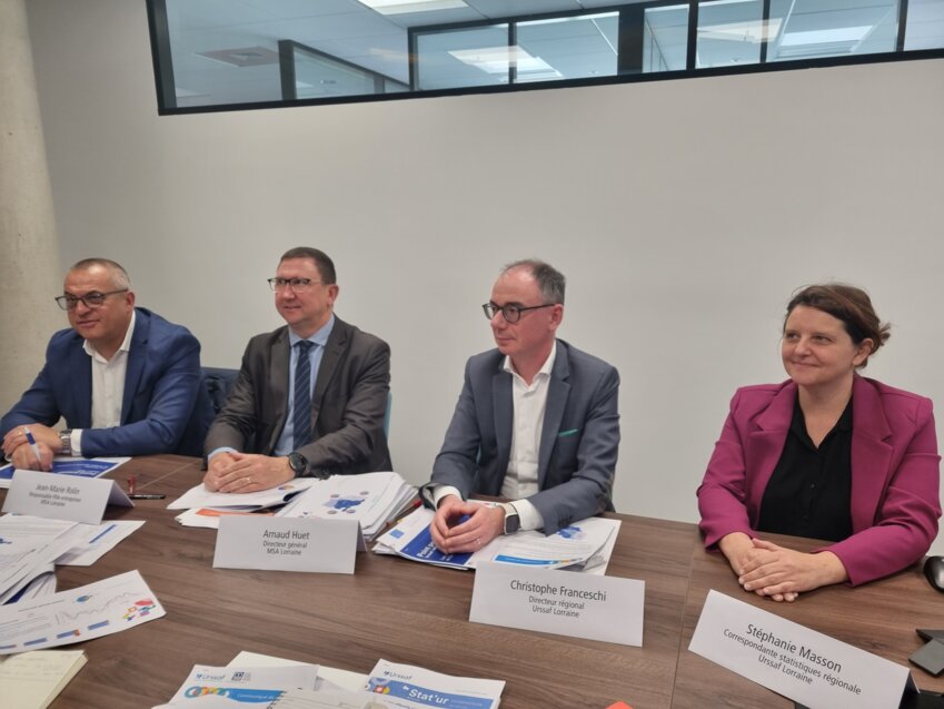 Pour l’Urssaf Lorraine, par son directeur Christophe Franceschi et Stéphanie Masson, correspondante statistiques régionales, et pour la MSA, par son directeur général Arnaud Huet, et Jean-Marie Rolin, responsable du pôle entreprises, les deux organismes ont présenté à Metz la situation de l’économie locale. Significatif à plus d’un titre. Au regard des données de l’Urssaf Lorraine, c’est une tendance qui se confirme : au 4e trimestre 2023, pour la première fois depuis trois ans, les effectifs salariés du secteur privé de fin de trimestre étaient en repli de 0,1 %, soit 17 900 postes, après le léger rebond au 3e trimestre 2023 (+ 0,3 %). Ils progressent de 0,5 % sur un an (+ 97 400 postes). Fin 2022, le glissement annuel s’établissait à +2 %. En Lorraine, les effectifs salariés baissent de 0,2 % sur un an, alors que le rythme annuel au premier semestre 2023 était positif. Depuis le 3e trimestre dernier, les emplois salariés se replient. Dans le périmètre lorrain, seule la Meurthe-et-Moselle progresse avec 610 postes gagnés sur un an (+ 0,4 % ) qui se situent notamment dans l’industrie, le commerce et les services. Meuse (- 0,1 %, avec une baisse importante dans l’intérim), Vosges (- 0,6 %, avec un repli marqué pour l’intérim et l’industrie) et Moselle (- 0,4 %) sont en retrait. La loupe mosellane nous indique que le département a perdu 590 emplois dans la construction, 490 dans le commerce, 370 dans l’industrie. En revanche, il en gagne 210 dans les services, 80 dans l’hôtellerie et restauration, 20 dans l’intérim. Au 31 décembre 2023, la Moselle comptait 254 460 salariés privé non agricole, soit 17,47 % des effectifs lorrains (1,456 million). Depuis le 1er novembre 2023, les séries d’effectifs salariés intègrent à présent les effectifs apprentis.